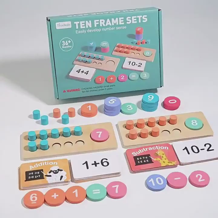 - This essential wooden ten frame set helps children visualize numbers, practice counting, and understand basic math concepts through hands-on manipulation of colorful counters.